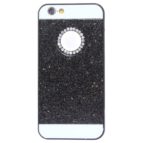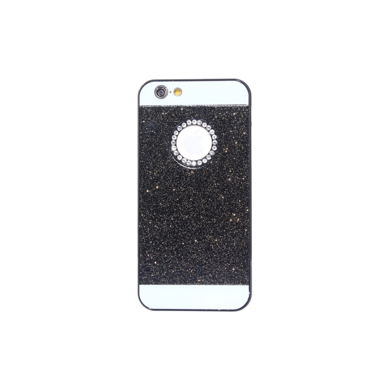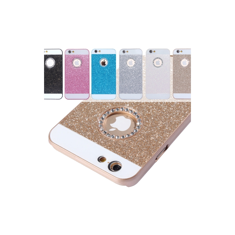Coque conçue pour iPhone 6. Surface recouverte de paillettes et contour du logo Apple orné de strass / diamants. Couleur au choix.