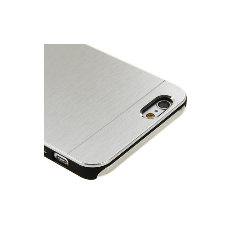 coque conçue pour l'iphone 6 et l'iphone 6S, la coque est en plastique et en metal de couleur argent, permet la protection de l'iphone avec une texture metal agréable