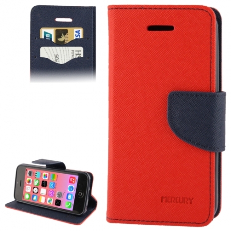 housse à rabat, conçue pour iPhone 5C, avec dans le rabat présence de fente pour ranger les cartes de crédit, l'intérieur contient une coque en plastique pour protéger et maintenir l'iphone.